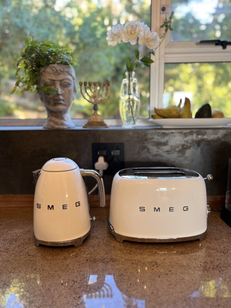 Beautifully furnished with chandeliers, velvet, and Persian carpets, the living area features an open-plan design with a fully equipped kitchen including a microwave, fridge-freezer, coffee machine, toaster, kettle, air-fryer, cutlery, and crockery. Also available in the kitchen is a 4-seater dining table perfect for meals. The lounge is furnished with comfortable seating, a TV with Netflix along with free Wi-Fi facilities, and a fireplace for colder nights.