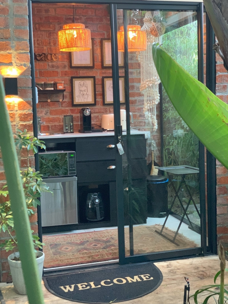 The unit opens up to a beautiful tranquil garden with more outdoor seating as well as a braai. Secure parking is available on the premises.